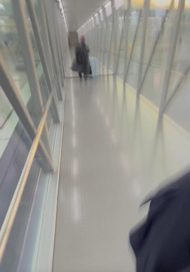 工作人员表示很理解她的心情,但现在真走不了,她等三四个小时坐十二点多的飞机,她听到后一声不吭就往廊桥里冲。